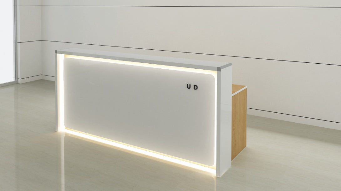 Whether anchoring a co-working entrance, medical suite, or tech-showcase flagship, **LuminaCore** balances the authority of steel with the hospitality of ambient light and eco-safe wood. Specify your size, steel color and LED tone; we’ll deliver a reception desk that doesn’t just say hello—it says *welcome to the future*.