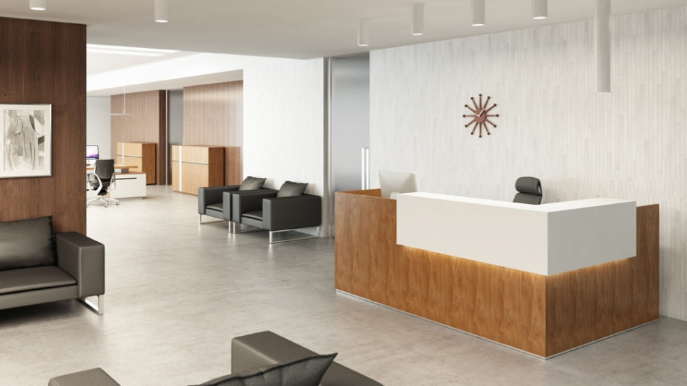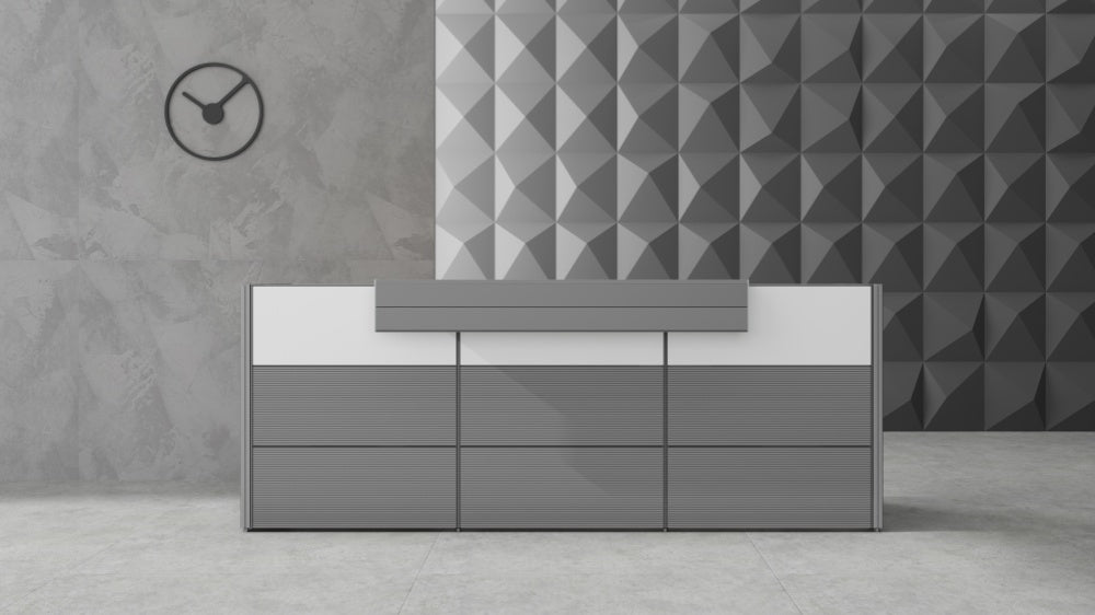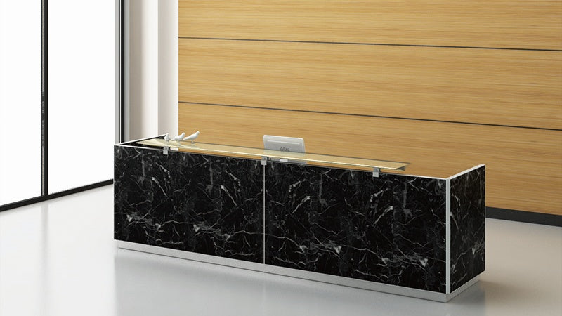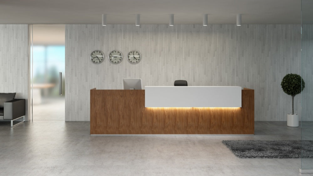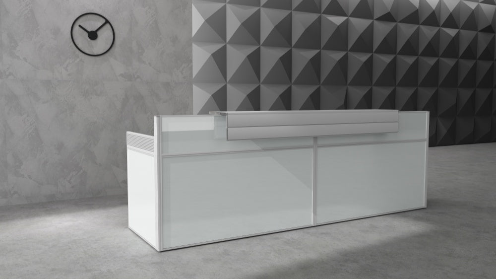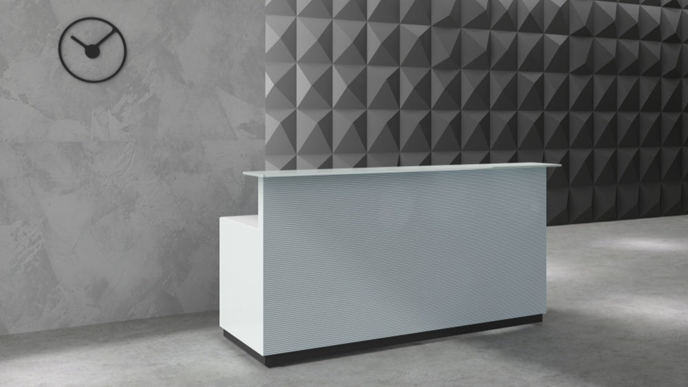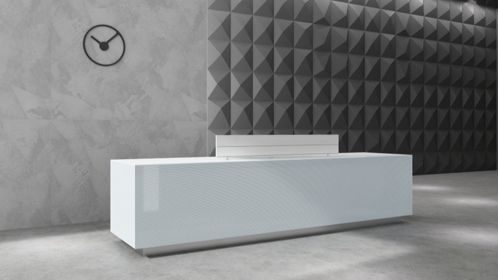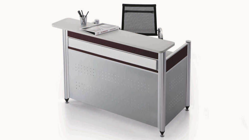 Make first impressions unforgettable with the **LuminaCore Reception Desk**, a front-of-house statement that pairs industrial strength with hospitality glow. The forward face is a seamless steel monolith—1.0 mm cold-rolled sheet, robot-welded and powder-coated in your choice of matte, metallic or anti-fingerprint finish—while recessed LED light strips trace both vertical edges, emitting a soft 4000 K neutral white that guides visitors like an airport runway without glare on phone screens.